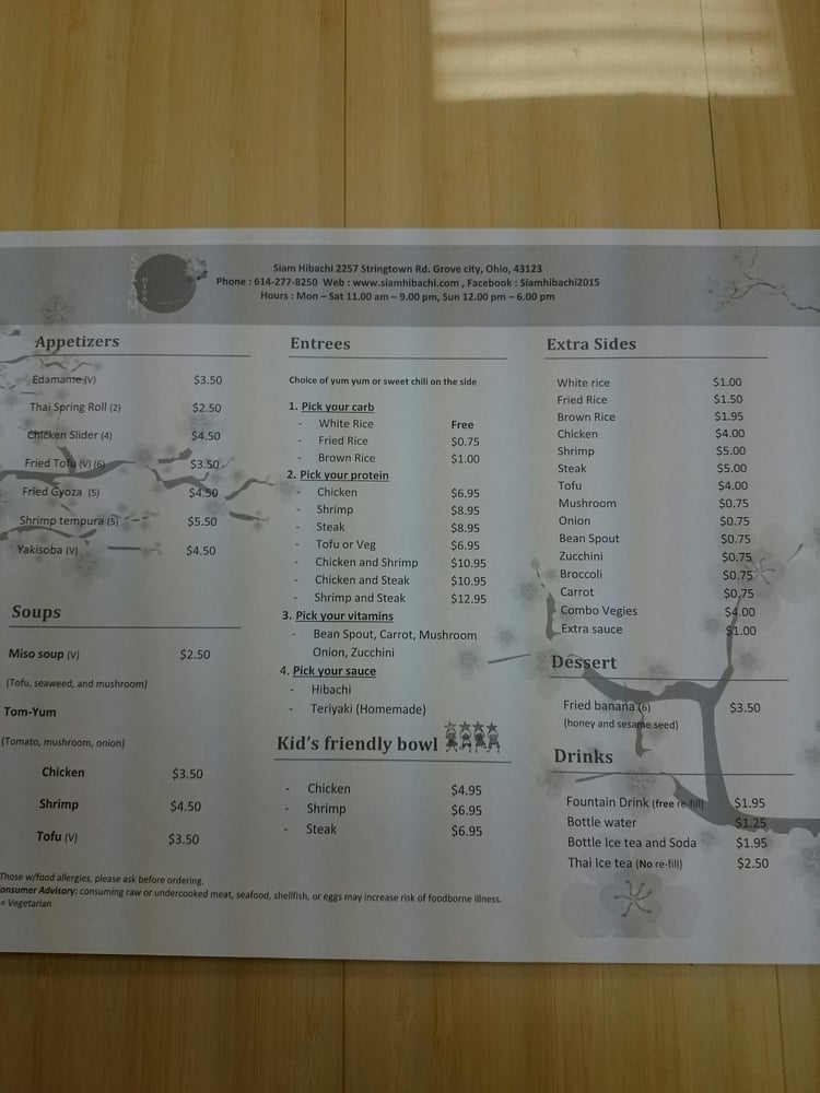 Welcome to Siam Hibachi, where the vibrant flavors of Japanese and Thai cuisine converge in a delightful dining experience. Located in Grove City, Ohio, this cozy establishment is perfect for both casual lunches and memorable dinners.